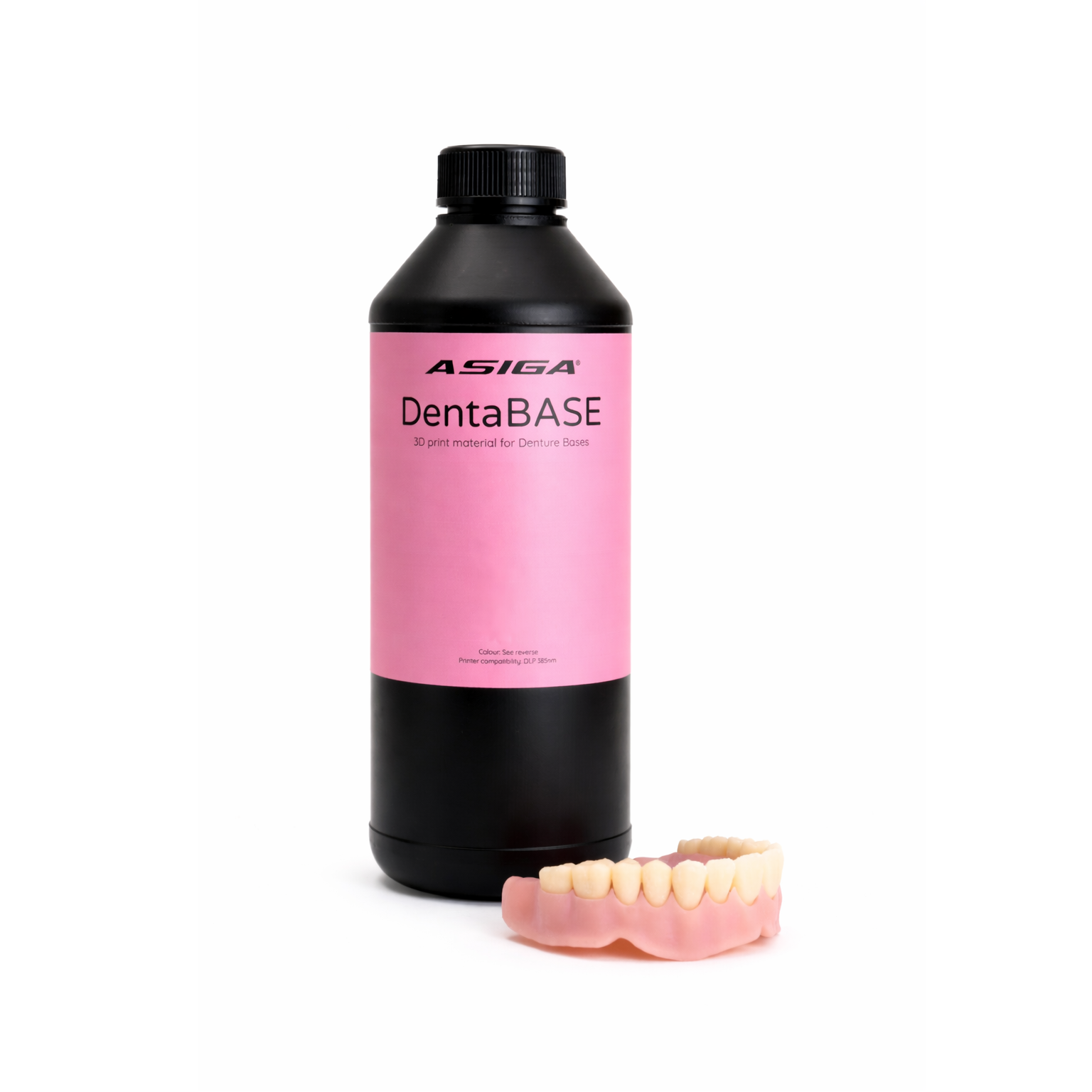 Asiga DentaBASE används för att tillverka basen till din tvådelade protes i kombination med 3D-printade protesständer, frästa protesständer eller prefabricerade protesständer.